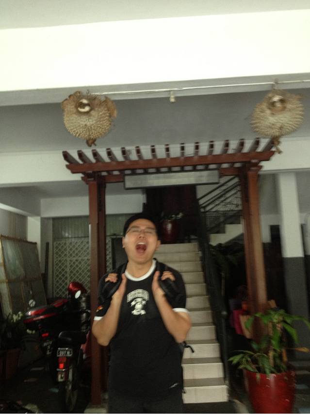 车子很颠簸的开了一个半小时,停在了一个破旧的小村落里,然后导游让我们下车,等在一个小酒吧门口,她不知道去和当地人在商量什么,我们一头雾水的等着,无聊的时候发现小酒馆的灯笼是用河豚做的,好有特点,既然无聊那就比比谁嘴大好了。。。。