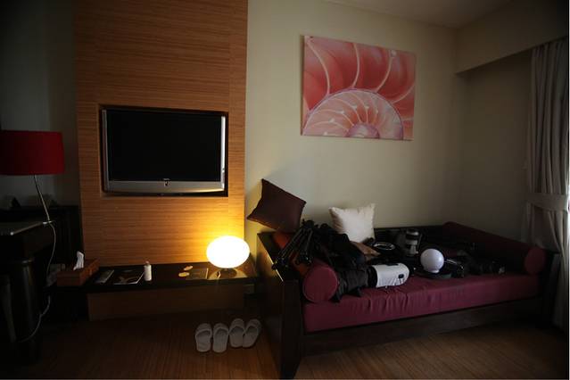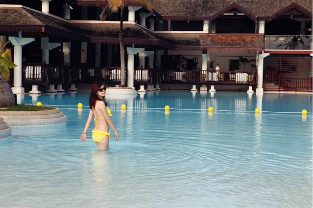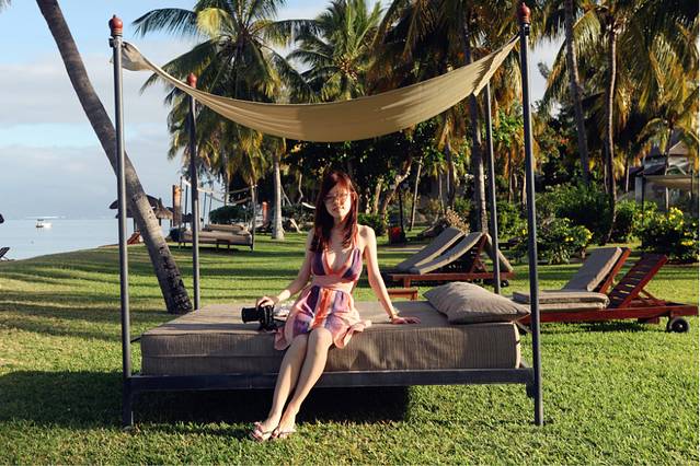 在遇到Charles同学以前我以为自己算得上是半个摄影爱好者,遇到Charles同学之后我这才发现我真的连入门级都算不上,作为一名极端闷骚、爱漫画、爱电玩的IT geek,Charles同学仍然能有无数妹子挣当模特让他的摄影技术不断精进,这点我佩服的五体投地。总之因为携带了过多的摄影器材,让我们的休闲度假彻底变成了劳动改造,上几张图以证其壮观景象(拍摄于索菲特沙滩屋的小院内):