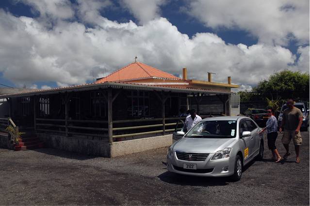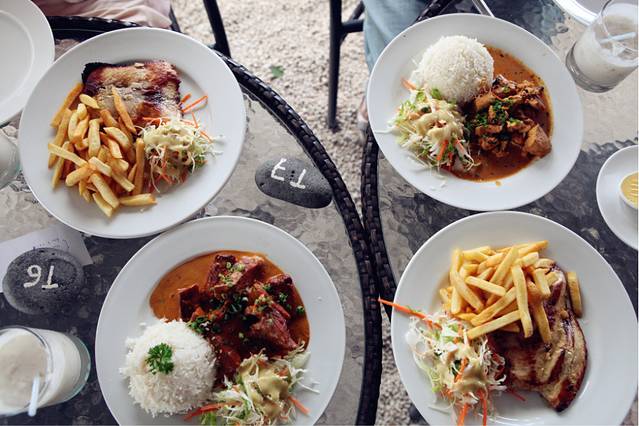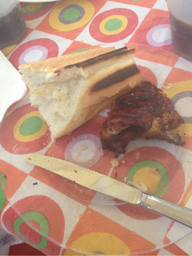 烤鱼,烤鸡,咖喱鱼,咖喱鸡,边上的饮品是酸奶加了当地的朗姆酒再加上一种香料调成的,法文的名字所以现在已经不记得了,石头上写着桌子的号码,也可以用来压餐巾纸,够原始的。。。