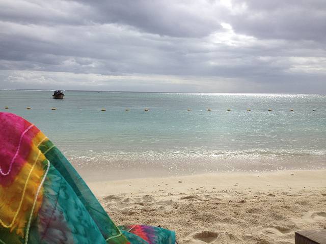 本来是计划干脆今天就出海看海豚,或者浮潜,但是看C同学很累的样子就建议他再睡一会,下午再出去。看C同学躺下睡熟之后,我就换上泳装,拿上那本没看完的书去沙滩晒太阳,但是单身的女孩子独自在沙滩上晒太阳真的需要定力,会有各路当地人不知道怎么打通了酒店,到了这片私人海滩贩卖各种东西,纱巾,项链,琳琅满目的,价钱非常不靠谱,而且你不买的话他会一直缠着你,这个我始终没有悟出什么好方法。最后实在招架不住买了一条当地人手工缝制的色彩斑斓的沙滩巾,漂亮倒是挺漂亮就是觉得被宰了。