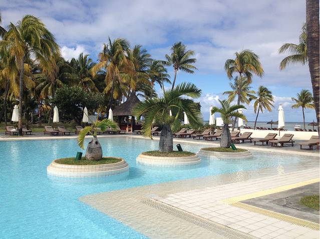 最后要说的就是我心心念念的贝勒玛尔了,这个酒店比索菲特要新很多,建的很漂亮,并且在东海岸靠近鹿岛的美丽的沙滩上(去鹿岛之前还真没觉得这沙滩能有多大区别),景色确实要比西海岸美一些。据说我们旺季住索菲特的价钱在淡季的时候就可以去住贝勒玛尔的私密性很好的独栋别墅了,想想就很郁闷。但是这个酒店还是存在一些缺陷的,如果你是属于闲不住的人不想天天晒太阳,想去多转几个景点,那住这个酒店真的离各种景点都很远,无论是七色土,鳄鱼公园,看海豚还是皇家植物园都在西边,所以每天在路途上要花费好几个小时的时间。再有一点就是西海岸的酒店看夕阳很方便,当然东边看日出很方便,只不过个人感觉夕阳的景象更缠绵一些~~。就算不住这几个酒店总之在毛里求斯最美的两片海滩一个就是东北边贝勒玛尔附近,再有就是西南的海豚湾,这两个区域有数十家各式各样的酒店,大家就自己去好好斟酌吧。