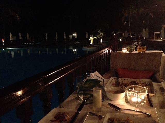 餐厅外面是酒店的泳池,不远处就是大海