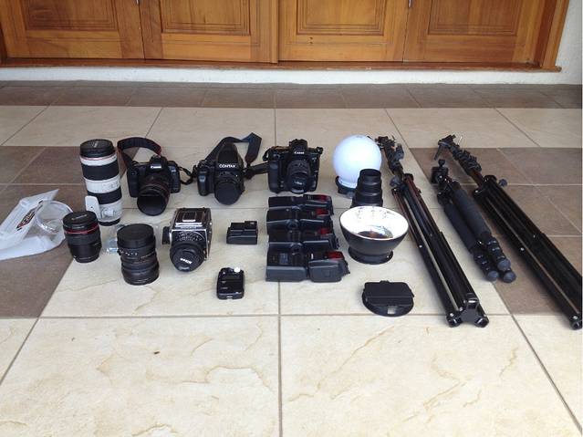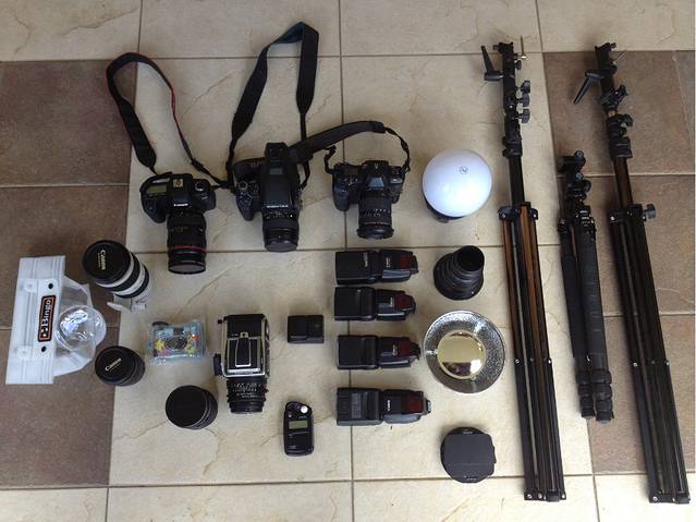 四个闪光灯(三个580 EX ,一个600 EX),一个无线引闪器,一个测光器;