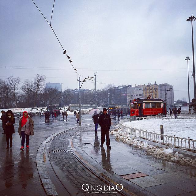 Taksim广场也就是独立大街的头,中间有树立一个雕像,电车在此也是终点。发现这的人下雨都不喜欢打伞的,大部分人都是顶着雨走路。