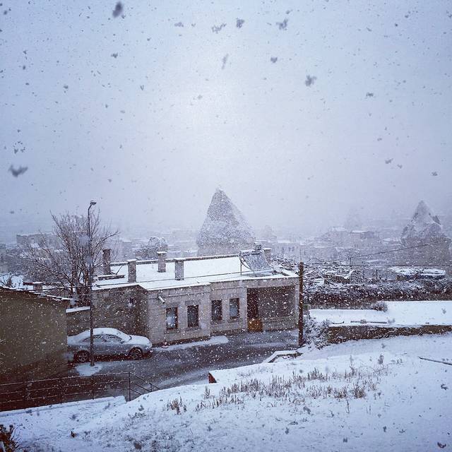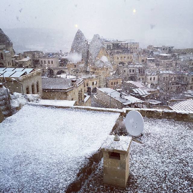 在格雷梅预留了3天,就是怕坐不到热气球所以时间放长了,第3天准备是想早晨拍点热气球人像,下午去火星地貌的地方拍人像,结果天气一天比一天差,第1天有太阳,第2天多云,第3天居然大雪,然后我们只能临时改变了计划,不过这雪下的也是非常的大,从来没见过哟,这算惊喜吗?