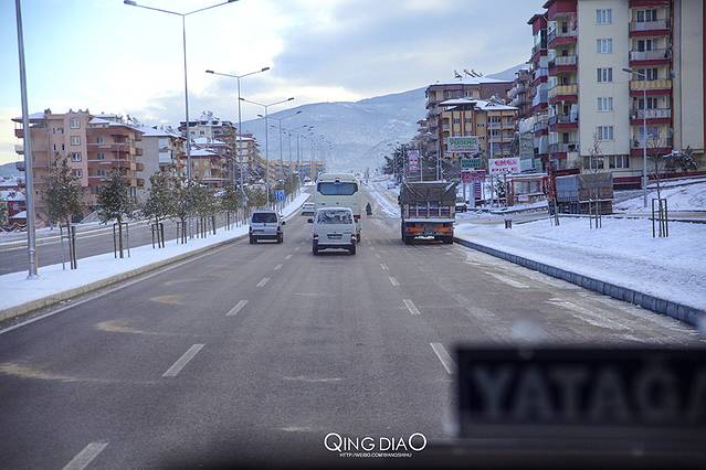 由于我们住在车站对面,出来就是,所以很方便,吃完早餐乘7:00的车,由于昨晚又下过雪,所以坐在车上一路看雪景。车子中途要停很多站,每个车站都有设置厕所的,在土国上厕所都要收费的,1-1.5TL。需要注意的车子要开部分山路绕来绕去,如果晕车的小伙伴建议带好晕车药。