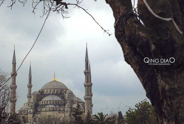 逛完圣索菲亚教堂,大概也就1小时左右,然后去广场对面的蓝色清真寺,由于清真寺正好在做礼拜,里面不给进,只能在外面看看了。其实伊城的一些景点都离的比较近,步行都可以到,像托普卡帕宫、地下水宫、圣索菲亚教堂、蓝色清真寺都在一起。