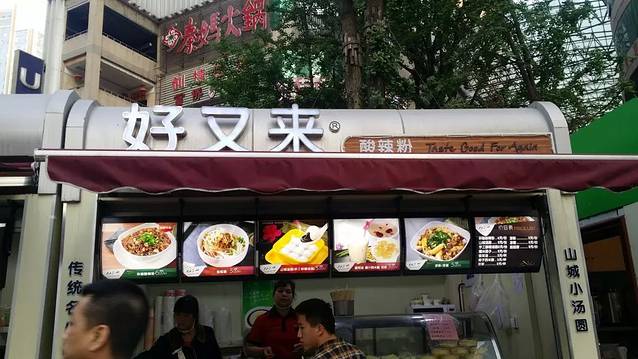 说道美食 我得先擦擦口水再说。名不虚传和想象的一样,有美女的地方小吃果然少不了。我们习惯了一路走一路吃的这种模式,去了重庆后更加放得开了,酸辣粉,担担面,小面,鱼蛋粉,街边的卤鸭头,各种串串,还有豆花,肥肠饭,老火锅,凉粉,还有酒店楼下有一家卖铁锅鸡,铁锅还有炭火,真的吃的不想回家。