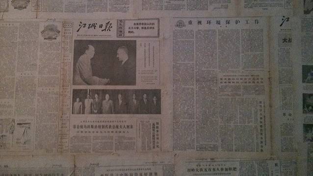 贴的70年代的旧报纸