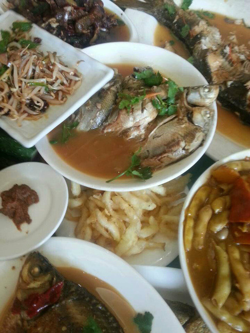 中午吃了全鱼宴,晚上又吃了烤全羊,湖边的鸭蛋也很好吃。气氛全在同学聚会中,热闹非常。晚住在湖景房中。第二天一早返回长春。