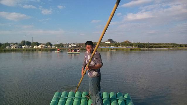 查干湖竹筏上的船工