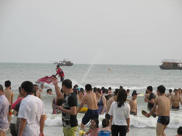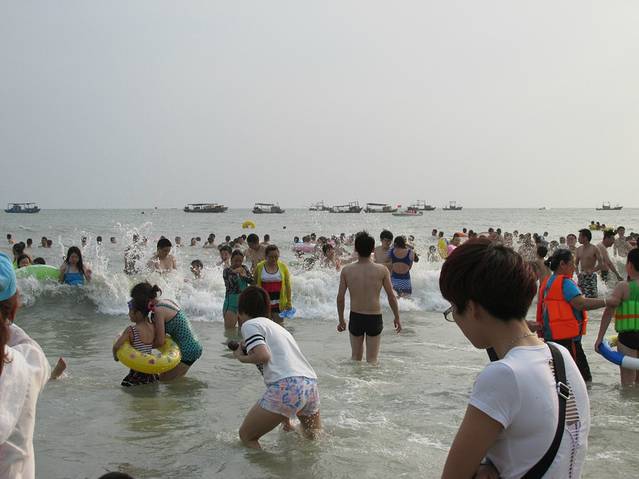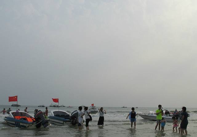 早上从北部湾广场坐6路公交去冠头岭海滩,大约30左右车程。到了那里一下车发现海边的太阳好大,像火一样扑面而来,伙伴们见况立马下海迎接海浪的洗礼,发现那天还真是个好日子,在哪里玩了大约3个小时就有4对新人在海边拍婚纱,尽管接近中午的时候太阳变得更火辣,但他们毅然决绝开开心心坚持到拍完。中午回酒店午休了一下,下午4点出发去银滩,这个时候的北海依然热气逼人(特别是坐公交,那个汗),大约40分钟左右我们到达了银滩海滨浴场,开始了比基尼观摩之旅(其实那天人超多,都是大妈们,没几个拿得出手的性感美女,哦啦啦~)大约下午六点开始,海潮变得汹涌 海风开始大了起来,大家都因为风高浪大变得兴奋起来,大家都特意接受海浪的打击。7点海冰浴场关闭,银滩的人潮逐渐退却,海潮越长越高,直至淹没浅滩,看完日落后等车回市区,最后只有3路公交可以坐,那个人挤到爆,招手都不停。差不多等到8:20左右,人略少坐上了回程的车,晚上he伙伴们一起去北部湾广场旁边的烧烤场享受了一顿海鲜烧烤,22点回酒店,第二天九点起床坐车回南宁,完美了的结束这趟北海之旅······