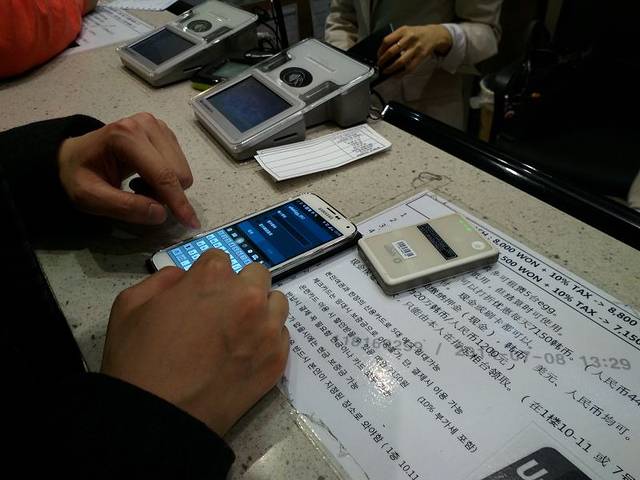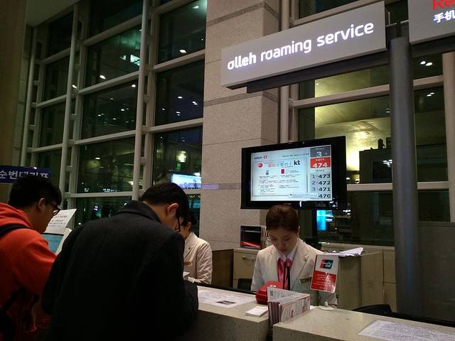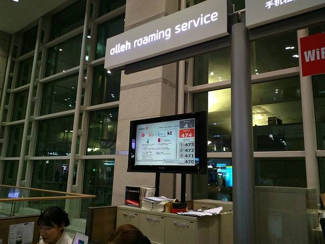 看到olleh roaming service这个招牌就对啦!我前面还有几个游客在排队,我先是在取票机取了号码,一边打开手机寻找订单(抵达仁川机场就可以连接到机场免费WIFI)。