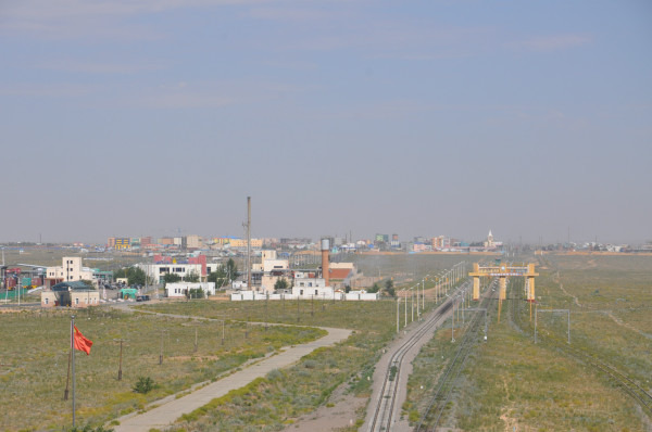 对面就是蒙古的扎门乌德口岸,黄色是蒙古的国门(以前是中国的,后来置换给蒙古了),天朝又盖了一个更气派的大国门