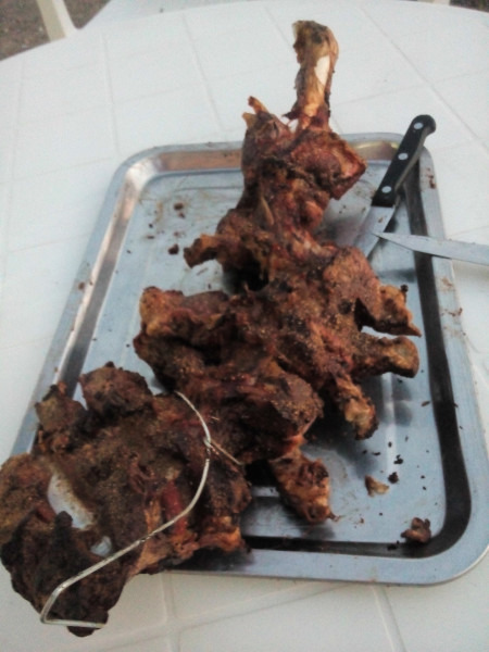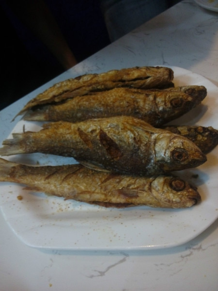 下山后,在蒙古牧民的饭店又每人点了一条华子鱼,老板热情的给我们介绍,说真的滑子鱼要30元一斤,假的8元一斤就能买到,看了我们昨天吃的华子鱼照片说是假的,肚子太大,尾巴也不同。也不知道他说的是不是真的,就当吃过华子鱼把,望高手给鉴定一下,要是两张照片都是假的,就不要告诉我了。羊腿80一斤,3斤240元;滑子鱼15元一条,75元,加上啤酒、蒙古面,一共460元。