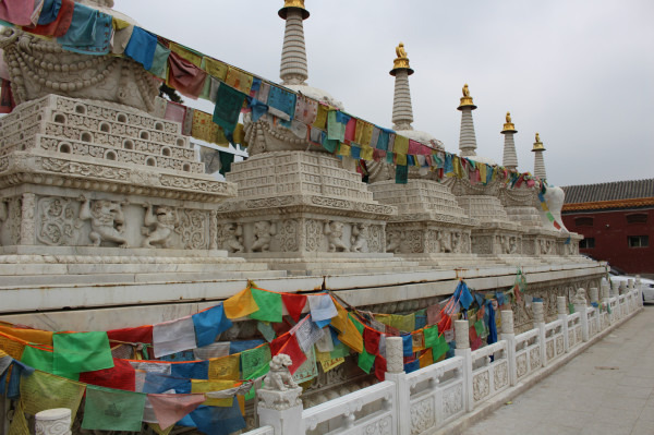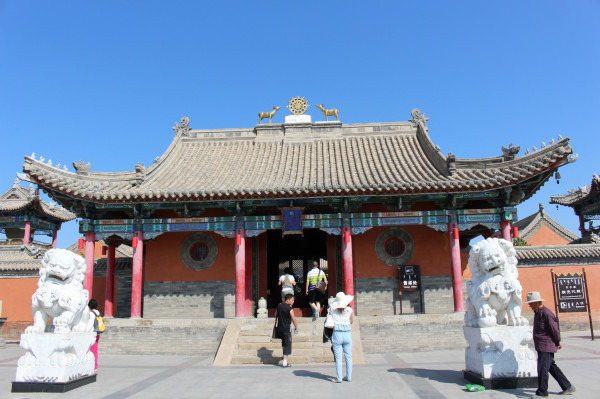 早饭后直奔大召无量寺,门票35元,携程预订价32元,但是需要到另外一个地方取票,鉴于呼市的交通状况只好作罢。大召寺是藏传佛教,雕像很多,有释迦牟尼十二岁等身像和藏教中被神化的文成公主与松赞干布金身,信徒在寺庙里顶礼不息,众多僧人席地而坐朗诵经文,每隔几分钟用号角、锣鼓等乐器连续击打奏乐,被僧人和藏民虔诚的信仰给震撼到了,体会到了藏传佛教的深不可测。