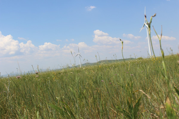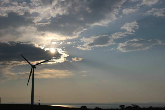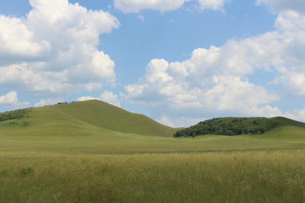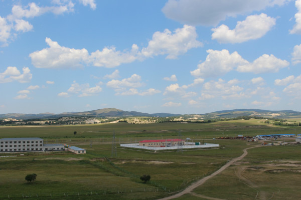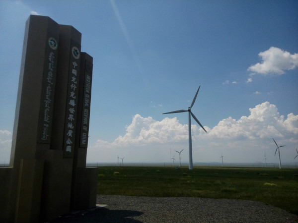 前往达里诺尔湖的途中,风景宜人,经过克里克腾旗地质公园的碑,有很多风力发电的机器。