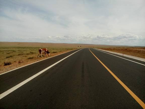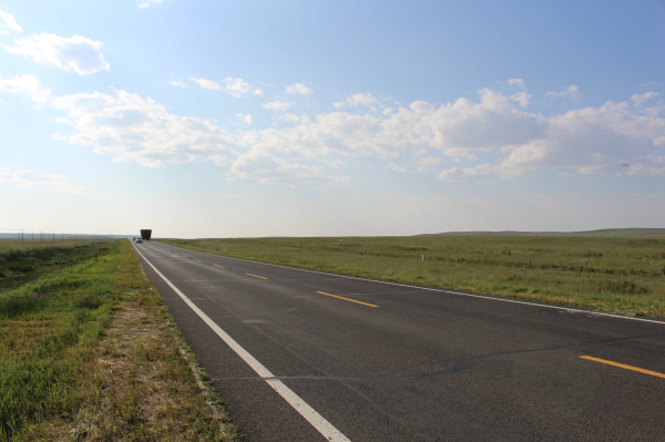 下午1点左右,给车加满油,向锡林郭勒出发。全程约346.9公里,35元。途径苏尼特左旗、阿巴嘎旗,前半段路况较差,车流量适中;到达苏尼特左旗后路况变好,车速可达130以上,不过在行至苏尼特左旗附近时路边有流动测速的警车,请大家小心。路程过半后,淡黄色的荒漠逐渐变成草绿色,植被覆盖率逐渐增多,草地上牛羊群与蓝天白云交相辉映,加上笔直的柏油马路,很是美丽。经过测试,草原可见度大约30公里左右。