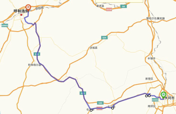 下午4点左右,从云冈石窟出发,离开山西。山西短暂的停留,印象尽管不是太深,但是五台山、乔家大院,还有最近比较火的郭亮村,有机会还是要去的。大同前往呼和浩特,全程230公里,前半段走G109途径左云(10元)、右玉县(20元),一路不算陡峭的盘山公路;下半段,在右玉县上高速,6点左右,从和林格尔出口下到达呼和浩特(35元)。呼市周边路况十分恶劣,部分国道坑坑洼洼、积水严重,进入市区后堵车严重,车辆在车流中缓缓行驶,简直要超越济南。