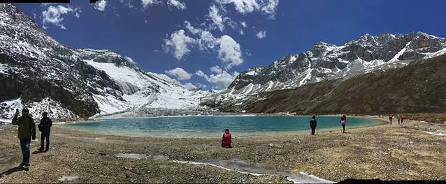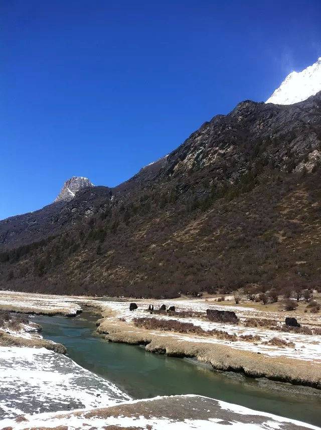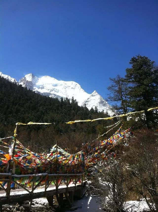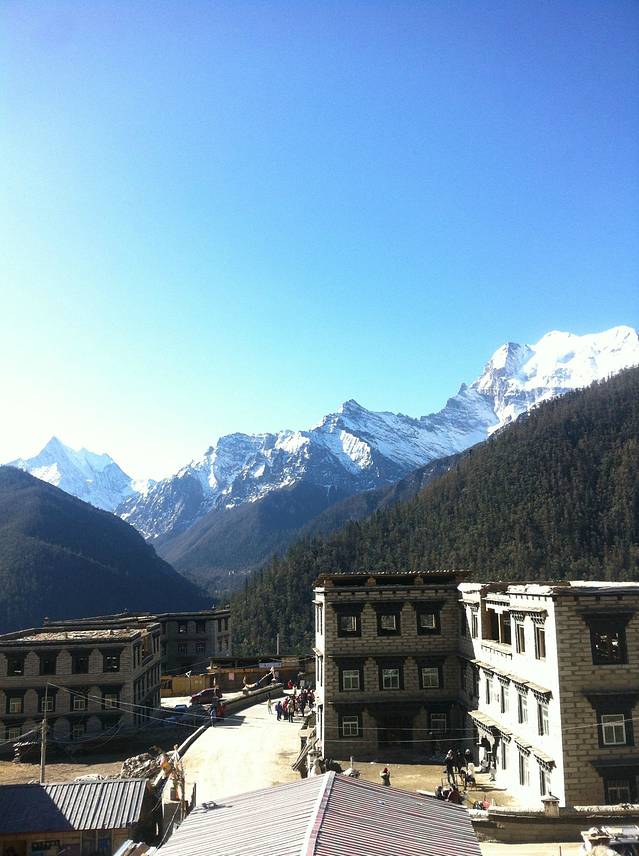 早上7点就醒了。起床吃了早餐,就在宾馆门口,10块钱,管饱。我们三人继续向着亚丁游客中心走去。由于住宿点离游客中心有段距离。在路上碰到一俩出租车,三人20元抵达目的地。由于是淡季,游人很少,买票,上游览巴士,分分钟搞定。票价是270元。对了,还有80块钱的电瓶车钱,一共是350元。哎,一顿火锅没了。11点到达亚丁村,住宿。本人没经验,没提前预定。只能住4人间的床了。一张床50元。说实话,睡不好,不隔音不说,而且同宿舍的有人打鼾说梦话。直接导致了我早上起来流鼻血了。还是建议提前预定2人间的,至少安心,睡的好。放好行李,打听游览线路。坐游览车,直杀景区。本人就跟着俩妹子跑,嘿嘿,谁叫我笨呢。。。来之前我都想好了,像我这种人,谁骗谁倒霉,算是砸他手里了。善意提醒,徒步从洛绒牛场到牛奶海,需注意合理使用体力。切身感受,特累!!!