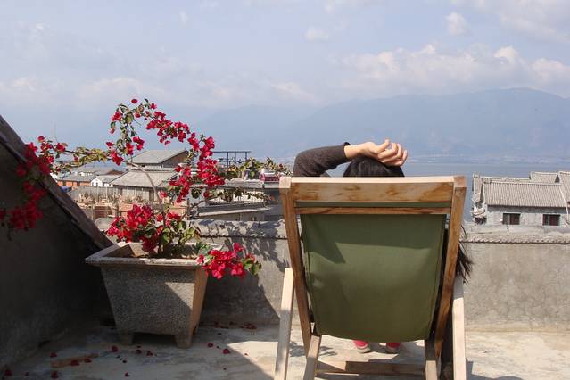 客栈的天台可以看到洱海,而且有椅子晒太阳