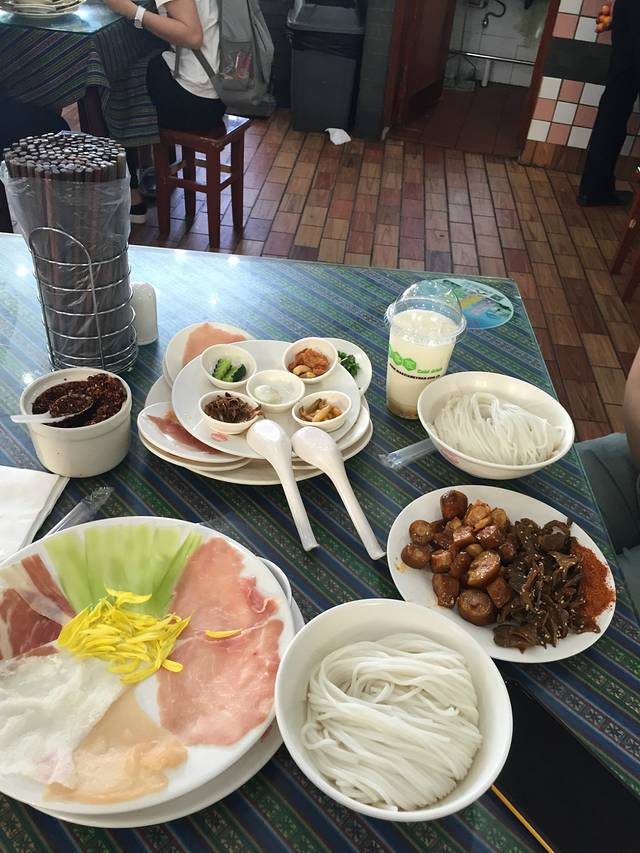 我的是如花似玉米线,男票点的什么忘了···不过味道都很好,我看当地人很多点那种凉拌的米线,感觉也好好吃的说~~