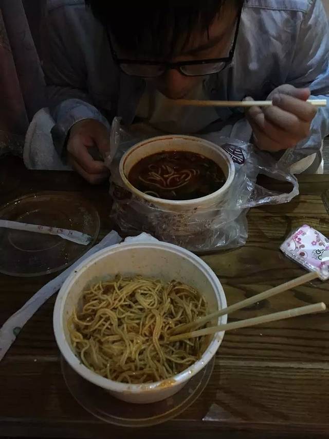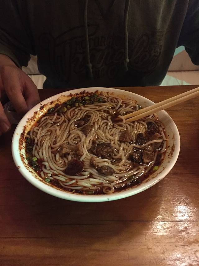 不知道是不是晚饭吃早了,在收拾好东西后,我们又开始吃宵夜了,点了份拌面和牛肉面,味道都很不错,拌面的味道挺像担担面,很对我的胃口。