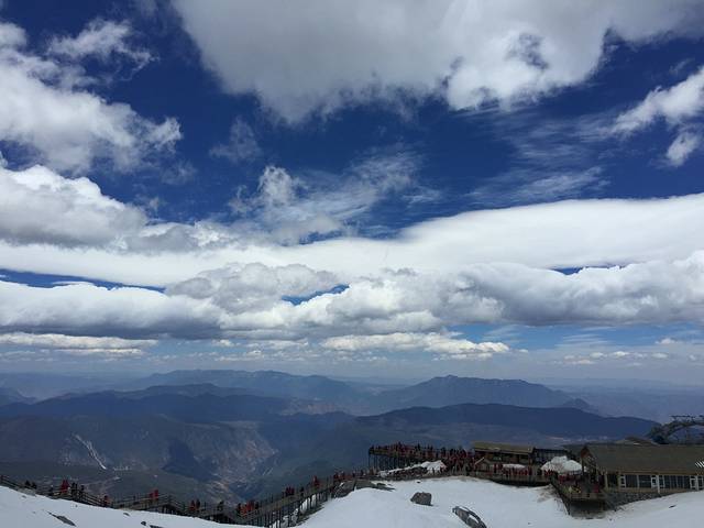 第二天早上9点集合去的玉龙,我们报的团好像是白鹿旅行社吧···不是很记得了,貌似这家旅行社在丽江做纯玩团做的挺好的,我们上午9点多出发的,下午6点多回来,去了玉龙雪山、白水河、蓝月谷,玩的还是不错的。旅行团提供防寒服、氧气瓶和水,这点还不错,所以大家报团时不要贪图便宜,一定要问清楚游玩项目与服务,有的给的玩的时间超少,基本上坐个索道就要下去了,根本没什么时间玩,所以一定要看清楚合同再签,我们这个是500元的,凭学生证退50,还可以,因为如果不跟团,自己包车或拼车去玉龙,路费有些贵,大索道加上进山门票就快300了,还要租大衣,买氧气瓶···所以报团还是挺方便的。刚开始天气不是很好,玉龙雪山风很大,导游都让我们做好可能坐不了大索道的心理准备了,但吃完中饭后,峰回路转,我们还是幸运的坐上大索道,12分钟上1000多米,登上4506米的冰川公园。游客在观景台能走的范围是4506的冰川公园到4680的顶峰。这个4680的顶峰并不是玉龙雪山的真正顶峰,玉龙雪山高5596米,因地质和气候问题,至今还是未被人类登顶的处女峰。到了4506米的冰川公园,还没走几步,男票就不幸的高反了,胸闷、心跳加速、头疼···没办法,只能让他在那歇着,我自己拿着个氧气瓶就向4680的观景台进军了。我平时虽然不怎么锻炼,但身体素质还行,但在这高原上,多多少少都有些不适应,基本上爬一溜子台阶就要停下来歇歇,有时吸两口氧气,然后接着走。一路上,越到高出人越少,不过我速度还好,而且爬上观景台后,感觉胸闷、心跳加速的症状一下子全消了,完全被玉龙雪山的霸气、壮美所征服。在观景台留恋的拍几张照片就开始往回走了,因为男朋友怕我一个人出事,所以就说好给我30分钟去爬山,而且一路都在微信,生怕我高反晕在路上。当他看到我神采奕奕的走下来时,不禁感叹,哎,胖子真心不行,还是减肥吧···我们下了玉龙雪山后就去了蓝月谷、白水河,因为还没到雨季,所以白水河还没什么水,没什么好看的,但蓝月谷真心漂亮,简直就是迷你版的九寨沟。全部玩完后,我们就返回古城了,路上路过了丽江的小吃一条街——花马街,不过考虑到吃完饭就想休息了,我们还是回古城吃了,晚饭吃的是奶汤面和卤肉面,味道都很不错。