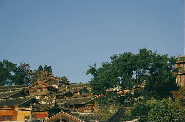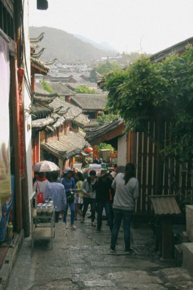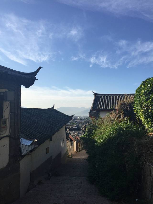 在古城看到远处的玉龙雪山