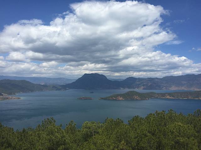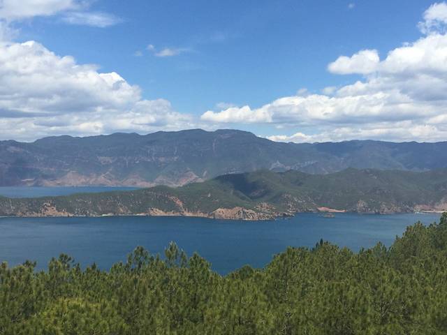 来丽江的第三天一早,我们就赶往泸沽湖了。到泸沽湖的车我是在淘宝上找的专线车,9座商务的,早上6:30出发,下午1:30就到了,中途遇到观景台什么的都会给我们停车拍照,中途还吃了个饭,但由于卫生条件实在不咋地,我们选择在饭店的水果摊买了四个梨充饥。不过在这种行程中,中饭神马的还是不吃太饱为妙,因为一路的感觉就是拖拉机加过山车,吃太饱胃会颠得难受。这类商务车我还是挺推荐的,因为基本上这种车会比十几座的中巴车要快,这类车过阿海水电站、金沙江,路线与中巴车路线不同,价格虽然贵一点,但是还是快不少,毕竟中巴车要9个小时左右的车程···当我们经过6个小时的颠簸,司机对我们说:“睡觉的都醒醒,这里到泸沽湖了”时,我们一车人都兴奋了,下车看到湖的时候,感觉长途颠簸的疲惫全都消失了。