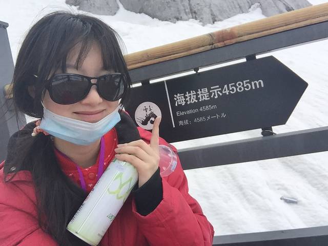 全副武装的我···建议大家还是把墨镜、口罩都带着,口罩不需要什么特别好的,那种一次性的医用口罩就行,超市、药店都有,很便宜,二者是绝佳搭配,防风+防晒,到山上气温低了,怕眼睛吹雾了,就把口罩拉下来,露出鼻孔就行了。男票是个大近视,本来死都不愿意带墨镜的,但没办法,担心雪盲的怕死星人还是买了副20元的谁知道有没有防晒效果的墨镜~不过他几乎没怎么爬雪山,所以等于没用~~
