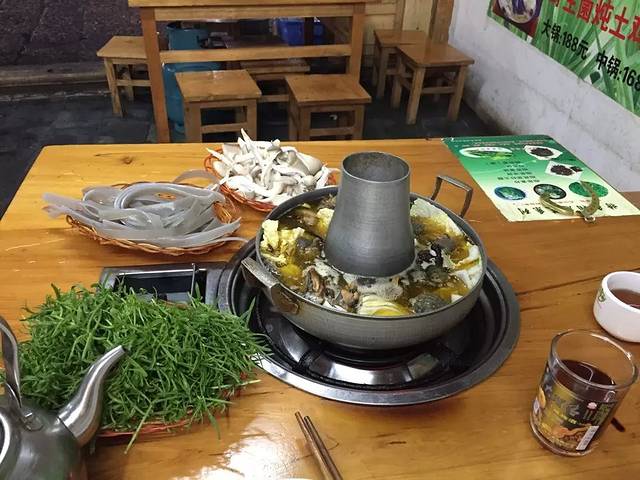 他家的湖鱼火锅是用鱼肉和猪膘肉一起炖的,所以猪肉不咸,鱼肉更鲜