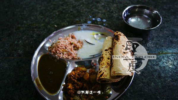 提着桶的志愿者挨个给每人的盘子里放菜与面饼,还有西米露,西米露味道非常正,一点不比我们国内的餐厅差,素菜的味道也好过印度之行的大部分印度餐馆,锡克教徒是严格的素食主义者,你在金庙的方圆5公里范围内根本找不到一家荤菜馆。而印度之行对于我最大的改变就是由荤菜类的饮食结构改变成以素食为主,这点我一直坚持到现在,也没有什么不适的感觉,只是觉得对肉类不再有欲望。