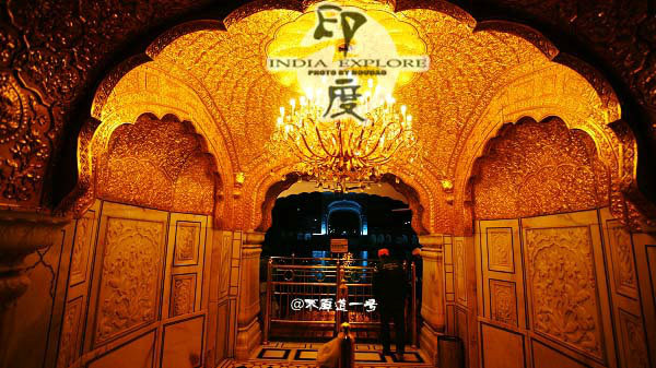 镶嵌各种宝石的大理石墙面与金箔包裹的金光闪闪的金庙给人带来强烈的视觉刺激。