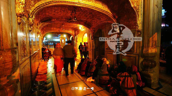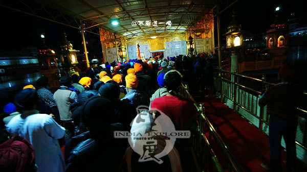 走进金庙的正面,音乐声与诵经声已经响起,信众们加快脚步奔向金庙,问一位过路的印度人,告诉我每天晚上10点的仪式马上就要开始了,要看得赶快过去;于是马上提着相机跟着他们一起快步奔过去。