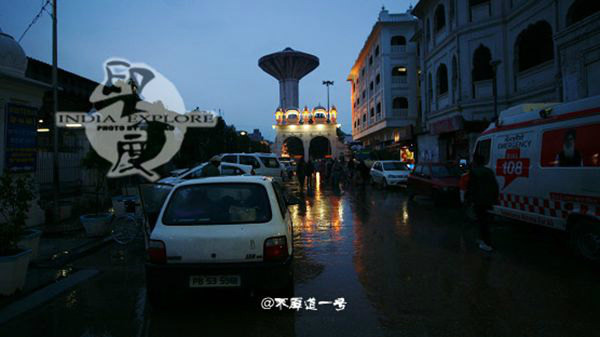 此时已经近夜里10点,雨还在一直下,刚才还熙熙攘攘的朝圣者这会已经稀少,从外国人宿舍到金庙的大门虽然只有一条街的距离,但是金庙是不允许穿鞋的,我干脆把鞋脱在背包边,光脚走过冰冷刺骨的雨夜街道,只身走进金庙。