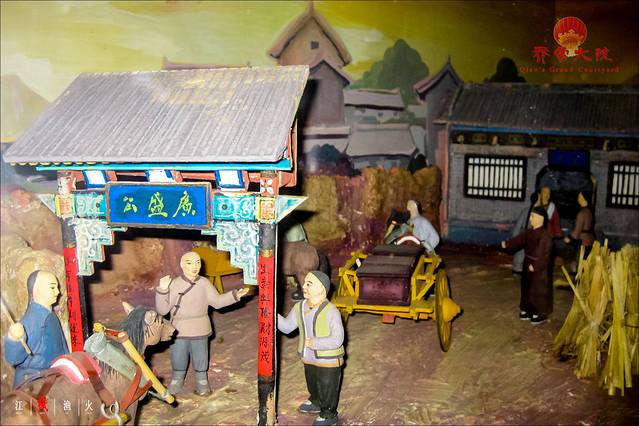 第二院是二期工程,那在第二院所展出的就是乔家的发迹史。我们来进来看一下,乔家的发家始祖乔贵发,名字是很好的,贵发贵发,既富贵又发达,可是他却是命运不济,很小的时候就父母双亡,他被寄养在舅父家里,那他却是一个十分勤劳有踏实的人,亲戚邻里有什么事情,他都乐意去帮忙。有一天,他的亲戚结婚,他还是照旧去帮忙,等到新人行礼的时候,新娘新郎要找乔贵发来行礼,后边的人就说“给那样的人行礼,还怕有失身份呢”这时乔贵发刚从厨房赶过来,满身灰尘,听到这句话后,心想,我堂堂一个五尺男儿,只因家里贫穷,就让别人这么看不起,一咬牙,一跺脚,独自走了西口,开始了自己的发家之路。他与清徐的一个姓秦的小伙子,一起在一个杂货铺打工,由于他们的勤快和好学,受到了老板的赏识,教会了他们很多的经商之道。后来,他们有了一些积蓄,就自己开了一个草料铺,有一年,是个丰收年,粮价跌落,黄豆价格尤其低,他们便趁机购存大批黄豆。不料,次年黄豆紧缺,价钱不断上涨,他们便将黄豆抛售出去,获利颇丰。于是利用这笔资金,开设字号,名为广盛公。后来因为管理的滞后,有些亏损,经过三年的整改,终于有了新的起色,当时把“广盛公”改名为“复盛公”,他们认为这是复兴基业的新起点。我们看到下一位人物就是乔贵发的儿子乔全美,如果说,乔贵发是乔家的开创者,那他就是一个发展者,他为乔家制定了一系列的家规家训,一会儿我们去看看。那乔全美有两个儿子,大儿子乔致广英年早逝,二儿子致庸继承家业,我们看这幅图,这位就是乔致庸,在他的手上,乔家度过了最辉煌的时期。他是乔家最年长的人,活了89岁,一共娶了六个太太,最小的一个可能可以作他的孙女了,大家可能会问,乔家不是有很严格的家训吗,怎么会娶6位太太呢?他活了89岁,老了如果总是让女仆伺候生活起居,那样不是很方便,所以儿女让他娶妻,但从不纳妾。当时乔家的生意遍布整个包头城,那有这么一句话叫“先有复盛公,后有包头城”。