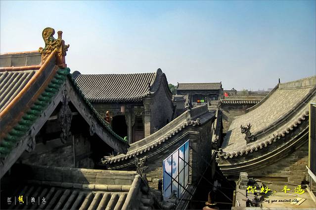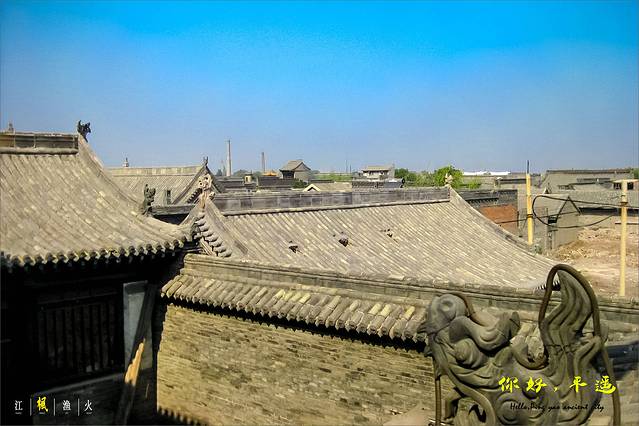 七怪:平遥房子半边盖,财水不能往外流。【注:平遥老民居的房脊都在房屋后墙,成一面坡式单向流水,其它地区房脊在房屋中部为人 字形两面坡双向流水。平遥讲究雨水为财,财水不外流。】