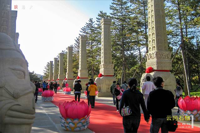 ↓↓↓在云冈石窟,随处可见这种居大的莲花,它们和佛像相得益章,甚是壮观。(但有可能这种景象也只有像国庆这种重大节日才有)