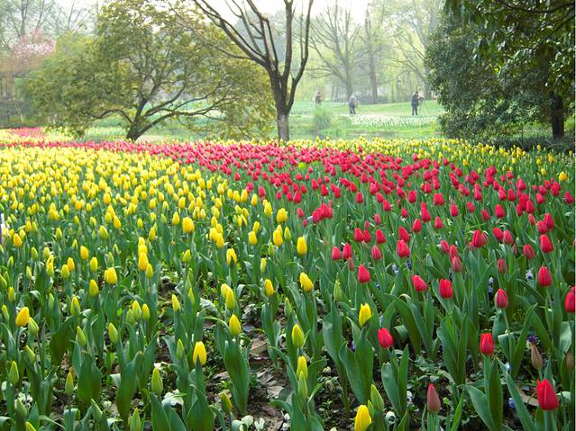 从花港观鱼出来往前走就到了太子湾公园,整片的郁金香花海,很是壮观,公园的景色非常美