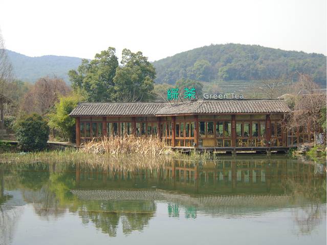 从龙井出来几近中午,当然会去著名的“绿茶”,很有特色和明显的建筑,周边的景色很不错,就在去苏堤的路上,这里人很多,又是在拿号排队中等待美食