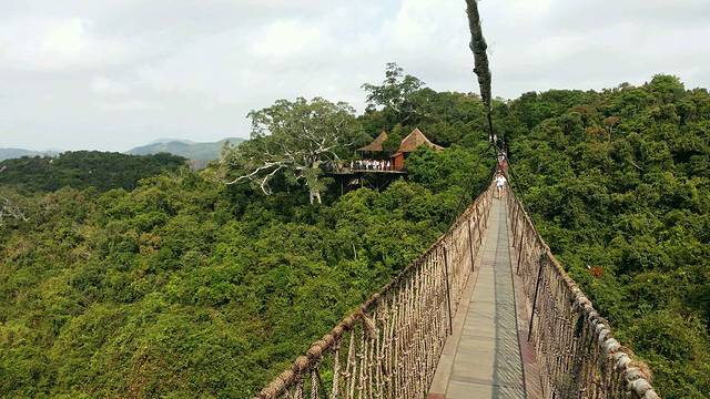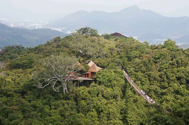 伴随着清晨的鸟鸣声,我们早早的起床了,酒店准备了自助早餐,挺丰盛的。吃完的早餐,我们开始了一天的行程,首先去了过江索桥,电影非诚勿扰里舒淇摇曳着长裙从桥上走过给我留下深刻的印象,这也是到森林公园必去的一个景点。个人认为兰花谷没什么好看的,对兰花感兴趣的朋友可以去看看,里面都是人工栽培的兰花盆景。随后我们去了云顶,云顶上的试婚房和教堂也是非诚勿扰的拍摄地。云顶也是整个森林公园的制高点,站在云顶可以欣赏到整个公园,包括亚龙湾的美景。