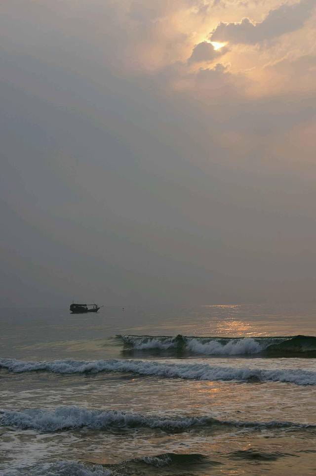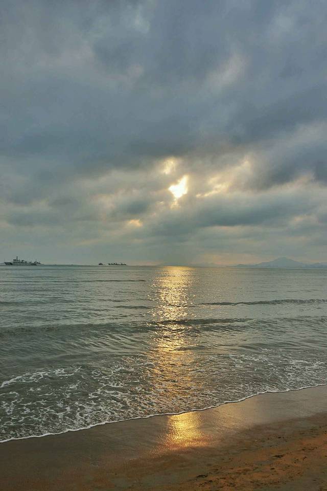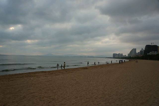 晚上我们住在凤凰岛上,离三亚湾很近,三亚湾是最早开发的海滩,也是看日落的绝佳地点。只可惜我们去那天太阳被厚厚的云层遮盖,始终不肯露脸。三亚湾临近市中心,人气很旺,海滩上人很多。