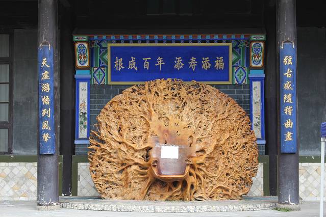 很大的根雕,是用桂圆树雕制而成,圆盘是树根,座椅是树干~~~