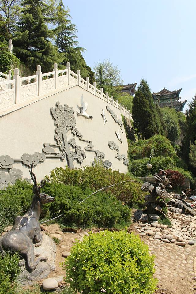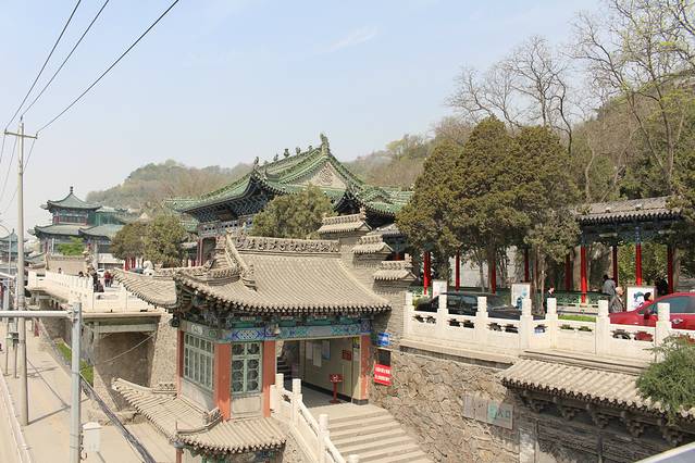 白塔山的亭台楼阁,很不错,我们大多数见到的是红色的屋顶,这里是绿色的,为啥?求科普??