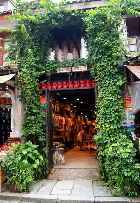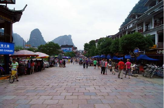 西街位于阳朔县城中心,是一条有着1400多年历史的老街,沿街的建筑至今保留着小青瓦、坡屋面、白粉墙、吊阳台的桂北明清时期风格。然而,西街也是外国人在中国最密集的一条街,这条街因而充斥着令人惊讶的国际元素,比如这里沿街小店的装修风格大多中西合璧,而且设计得颇有创意,既有小镇的古朴风情,又有异域的浪漫风韵。