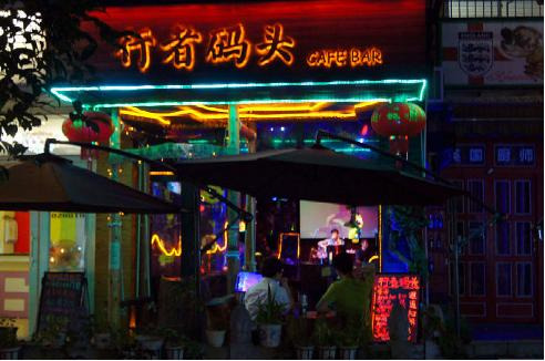 正是清明假期,在宿舍睡了一上午懒觉,醒来看到窗外的阳光,顿时觉得在蹉跎时光,于是在下午,决定离开桂林,到阳朔车站。嘿嘿,有没搞错,网上资料阳朔一个黄金周接待游客接近十万人,而车站的简陋程度却是我想象不到的,以致于没办法从那一个角度去拍张照片,各位驴子自已去参观吧。车站有一元一人的电瓶车到西街口,挺方便,自觉放钱入钱箱,满人就走。十来分钟,西街到了,各地都有这些仿古街,暂时看不出有什么特别哩: