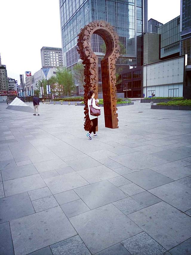 我们玩了三个多小时才出来,按照原来百度地图的路线,坐公车去了宽窄巷子。