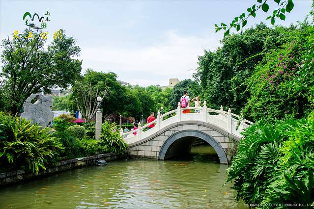 桥下,四个半圆的桥孔与其在水中的倒影形成四个玉盘,状如满月,正如“四轮明月伴芙蓉,半入澄江半化虹”诗句中所颂的美景。有“花桥虹影”美誉。