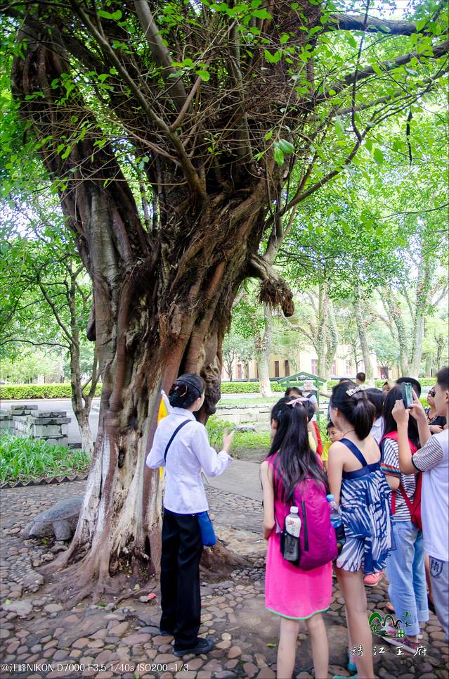 龙爪树:原名厚壳树,树龄250年,因其树形极像龙爪,又称“龙爪抓青天”。树身几次被烧,却仍然生存至今,是靖江王府的历史见证。下图量是龙头。。。